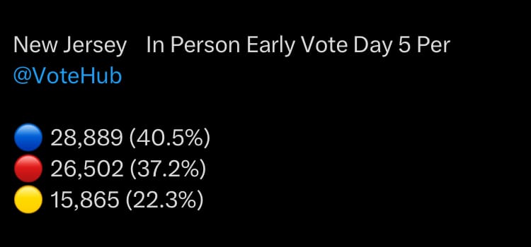 New Jersey and Virginia are both states that Harris won by roughly 5–6 points. If Democrats only match those margins — or win by slightly less — that would signal that the country hasn’t shifted noticeably toward them since 2024.