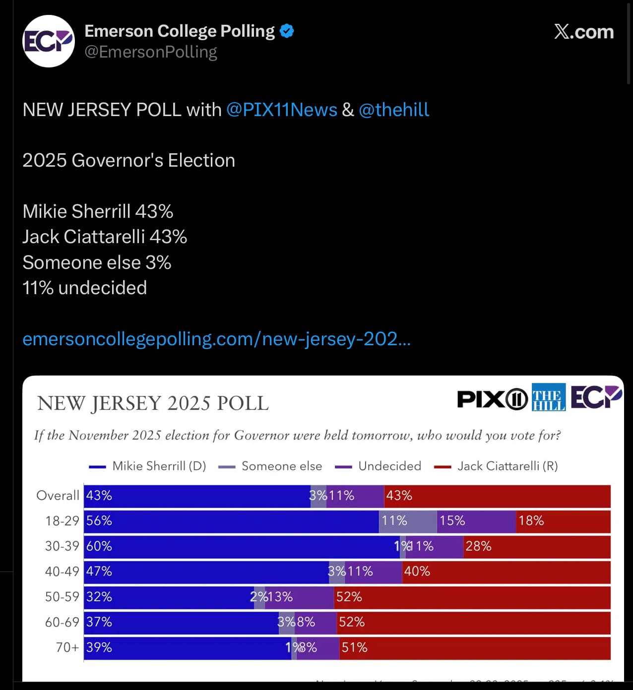- For Ciattarelli to win, he must replicate or outdo Trump’s 2024 inroads into those working- and middle-class constituencies and preserve or regain strength in affluent suburbs.