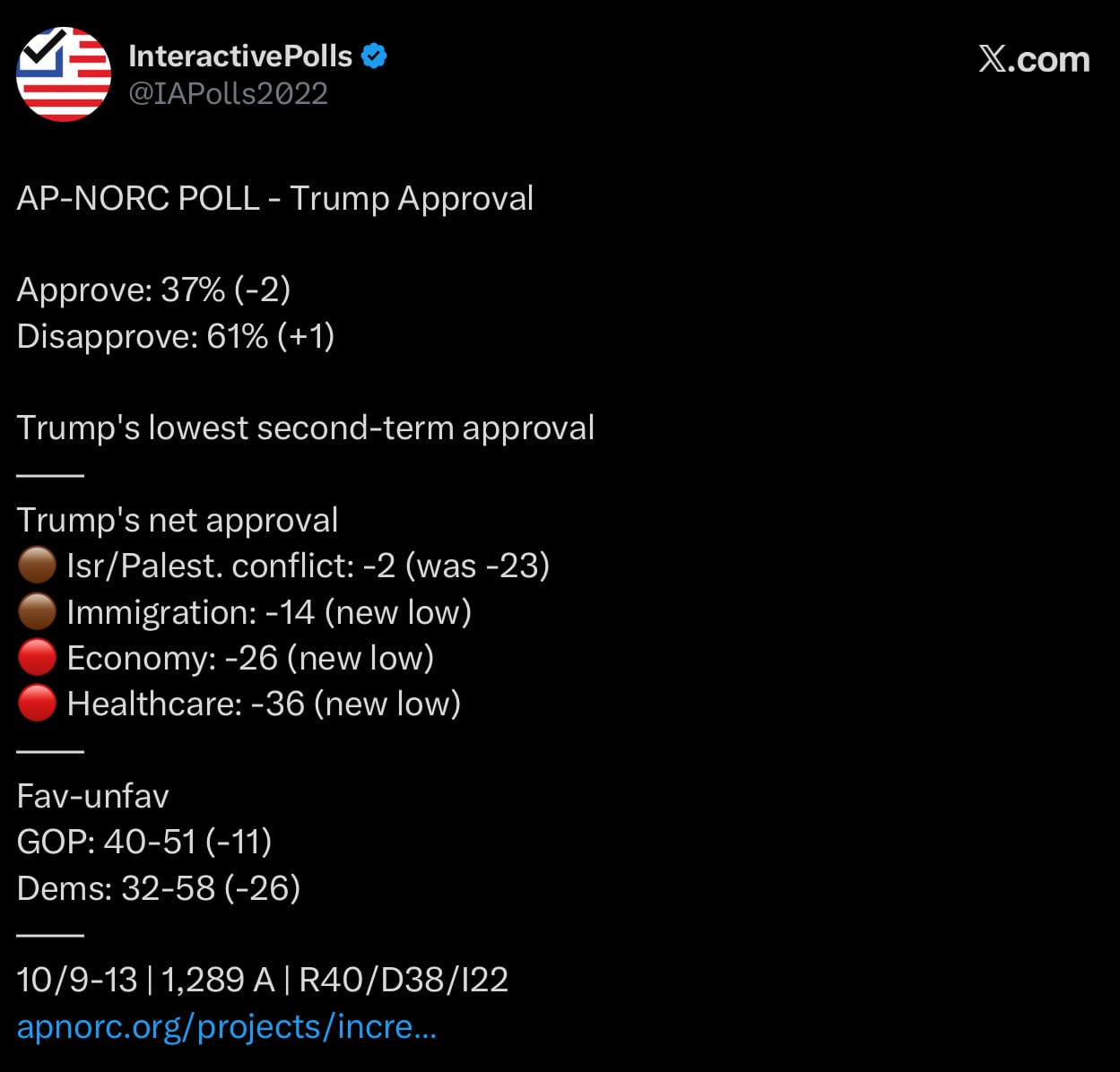 There was an outlier poll showing Trump’s approval in the 30s, like today’s AP-NORC survey. But there should be much skepticism about this poll.